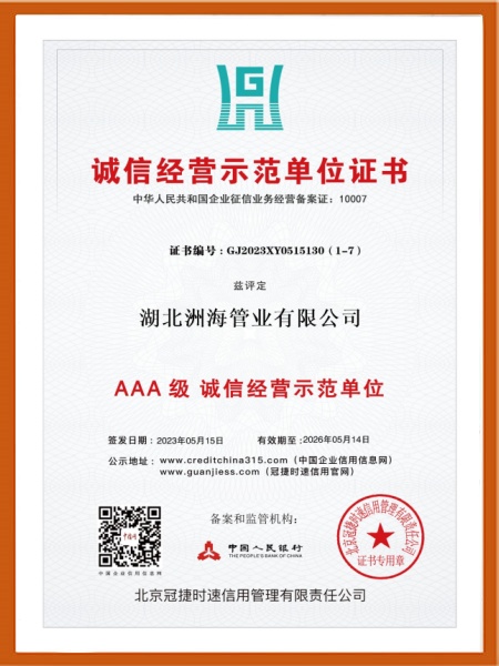 湖北洲海管業有限公司是專注于管道研發生產制造的企業。集團公司總基地位于湖北黃岡蘄春經濟開發區,同時在上海奉賢、江蘇南通、福建漳洲、四川成都、貴州興義等地均設有子公司及生產基地。洲海各生產基地配備多條自動化生產線及自主創新工藝,具有年產各類管道百萬余噸的生產能力,并擁有新一代健康環保型“綠色管道”系列產品,產品有:涂/襯/滾鋼塑復合管、熱浸塑電力穿線管、FBE/2PE/3PE防腐鋼管、螺旋縫埋弧焊鋼管管件等。洲海產品銷往全國23個省、自治區、市,產品廣泛應用于石油、天然氣、暖氣長輸管線、供水管網、排污管網、建筑給排水、消防、通訊、電力、化工和結構用管等領域,已形成科技含量高、品種規格齊、綜合性能好、應用范圍廣的經營格局。洲海先后通過ISO9001:2015質量管理體系認證、ISO14001:2015環境管理體系認證、ISO45001:2018職業健康安全管理體系、省級衛生許可批件、中國特種設...